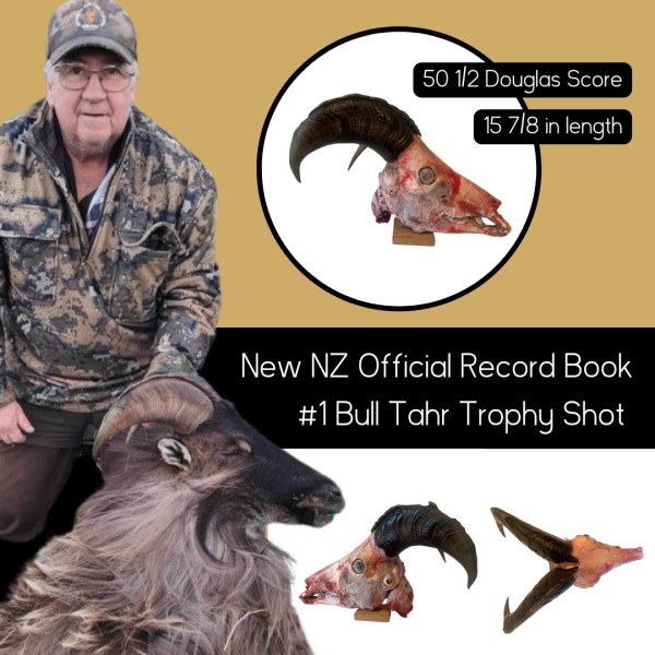 The former number one spot was taken by two bull tahr scoring 49 6/8 Douglas Score. First equal for bulls taken by Thomas Felts at Karangarua Valley, South Westland in 2012 and G. D. O’Rourke, Erewhon Station in 1987.