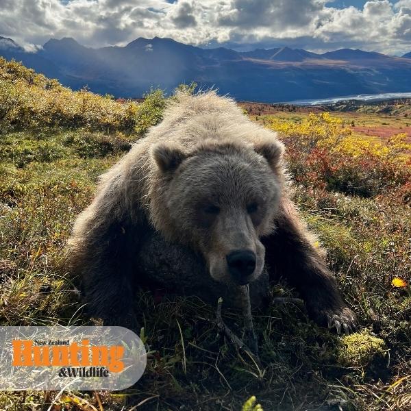 About halfway there, my guide stopped in his tracks and hissed “the bear’s back!”. The big blonde figure of a grizzly could be seen through the naked eye walking up out of a gully. Instantly we switched to stalking mode, using as much of the natural cover as possible to get closer to the animal. Fortunately, the wind stayed in our favour, and after about an hour I was in position to take a prone uphill shot from 300 metres. Pushing aside thoughts of wounded bears attacking hunters, I launched a 165-grain projective from my .300SM through the shoulders of the bear, causing it to do a roly-poly down the hill. Animal down!