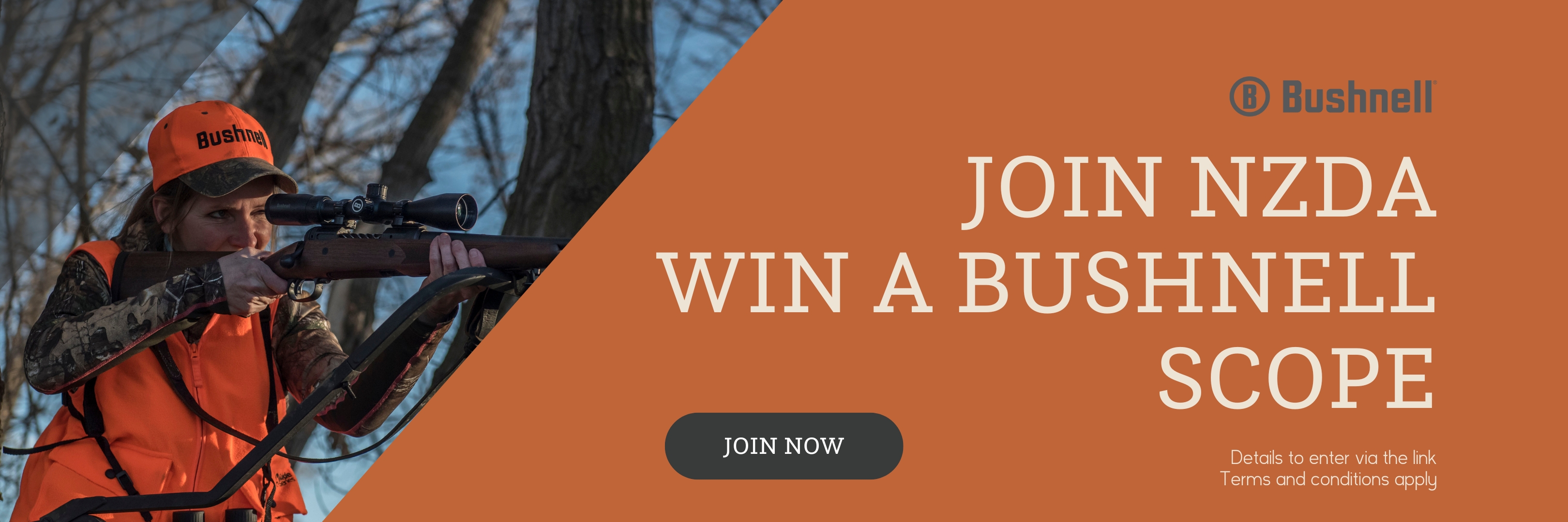 NZDA and Bushnell have teamed up to giveaway a Bushnell Prime 3-9x40mm scope to a lucky new member!