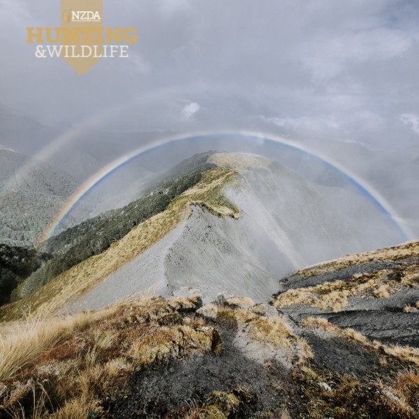 We decided we wouldn’t hang around where we were; we packed up and made our way further up the valley along the tops to extend our time. Deer tracks led our way as more rain came through, followed by thunder. When the clouds are that low, and the thunder is that loud, you don’t muck about in the open. We could see the bush edge we wanted to get to in the distance, so we it across and got out of the open as fast as we could. Nothing says zap me quite like a rifle pointing up out of your pack.