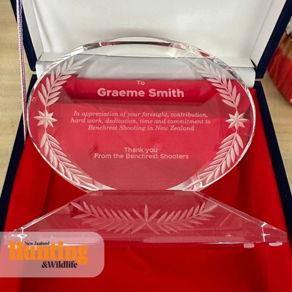 Many Benchrest competitors made a financial contribution and we presented Graeme with an engraved Crystal trophy.