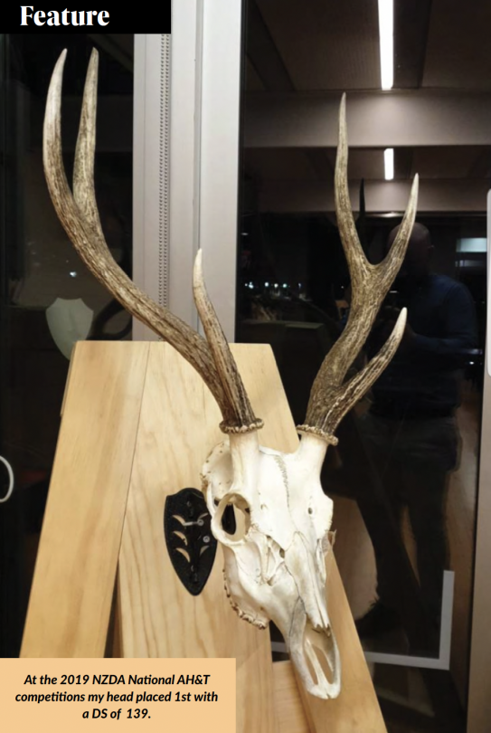 We made it to the top and it flattened out and opened up into the tawa trees. Every now and then I’d be trying my hardest to move as quietly as possible and then have the bloody living daylights scared out of me as a Kereru would fly off making a hell of a racket. Although it was good while it lasted, the nice open bush came to an end and it slowly started to close up and get tight. Before I knew it we were ducking and weaving, bashing our way through supple jack, trying to work our way down the ridge. After a good hour of this, we decided 'bugger it' so we dropped down into a creek and followed it which lead us into a bit of a grassy clearing with clusters of manuka trees and other bushes scattered throughout. I could hear something grazing in there somewhere but after half an hour of looking I never found it and the sound disappeared. By now we had a couple of hours of daylight left so we started angling back towards camp, dropping in and out of creek heads, heading up and down spurs and then ending up back on top again. Callum was far behind me, giving me a bit of space, that’s when I saw it! It popped up out of some crown fern about 60m away and bolted! It was in full flight and ran behind a mound so I couldn't get a shot off. It popped back out on the other side, about to head across the ridge and back down the other side when I lined up the crosshairs and squeezed off a shot, leading it just slightly.