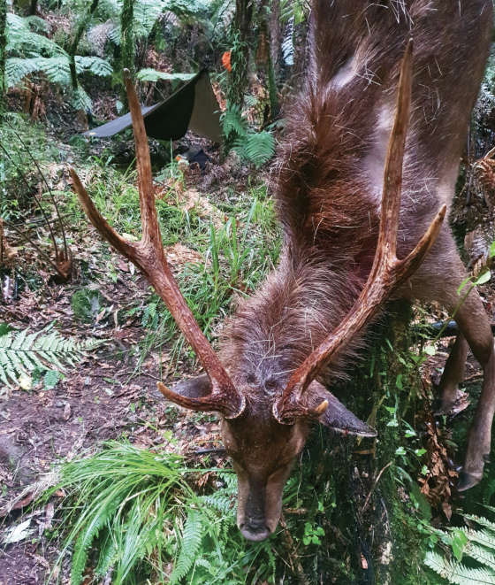 With my newly acquired knowledge of Rusa deer, I was now buzzing with excitement and bloody stoked with myself as Callum walked me through how to dress it out. He taught me how to turn it into a backpack and at this point I was still bloody pumping with adrenaline as I got it on my back and we headed back. Let's just say that lasted all of 40 minutes before it all turned to thoughts of "when the hell are we going to make it back to camp!" By now she was dark and I couldn't find my headlamp. We started dropping down trying to get to the height of the swing bridge and were about 50 metres away when I tripped and rolled down the bank towards the river! Managed to stop by unintentionally slamming into a tree. "You all right?" yelled Callum. "Yup" I said and then he came down to help me up but not before having a good laugh. We messed around for the next 20 minutes trying to find the bridge which was nowhere near where the GPS said it is! When we finally made it back to camp once again Brent was back already but this time with a six pointer of his own already hanging up! The beers that night never tasted so good and my bed never felt so good! This was my first deer and I'm not sure now how I'm supposed to top a six point Rusa as a first but I owe a huge thanks to Callum and Brent for the help, tips and advice they gave me!