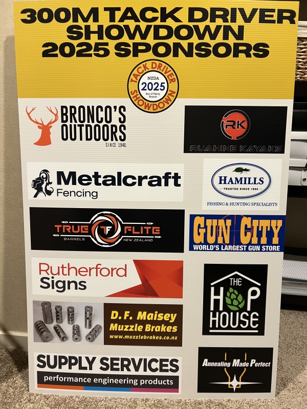 Scott McLay, an F-Class shooter, won the tournament to become the 2025 Tack Driver Champion with a 284WIN AI cartridge in an F-Open class rifle. I believe Benchrest is hoping for a comeback next year! Nick Petry, a PRS shooter and member of the Bay of Plenty Branch, came 4th with a 6GT shot off a bipod.